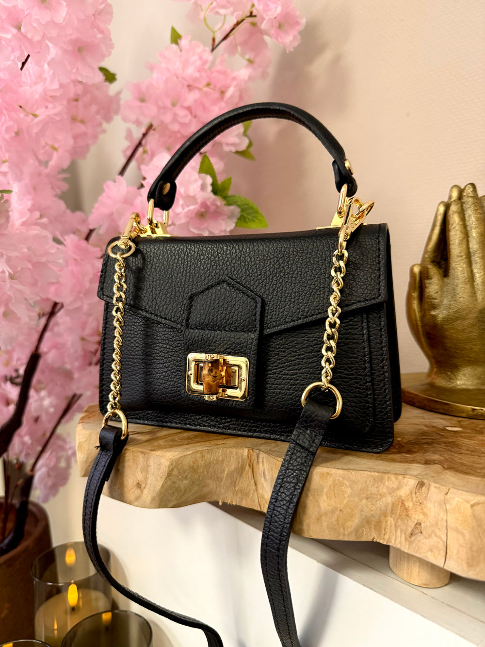 Dit tasje is meer dan een statement piece. Onze Noir Affaire is een hand- en schoudertas die blikken doet vangen.